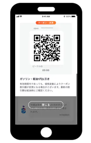 【アプリ】<アプリの給油クーポンを「使う」をタップしてQRコードを表示させてください。>