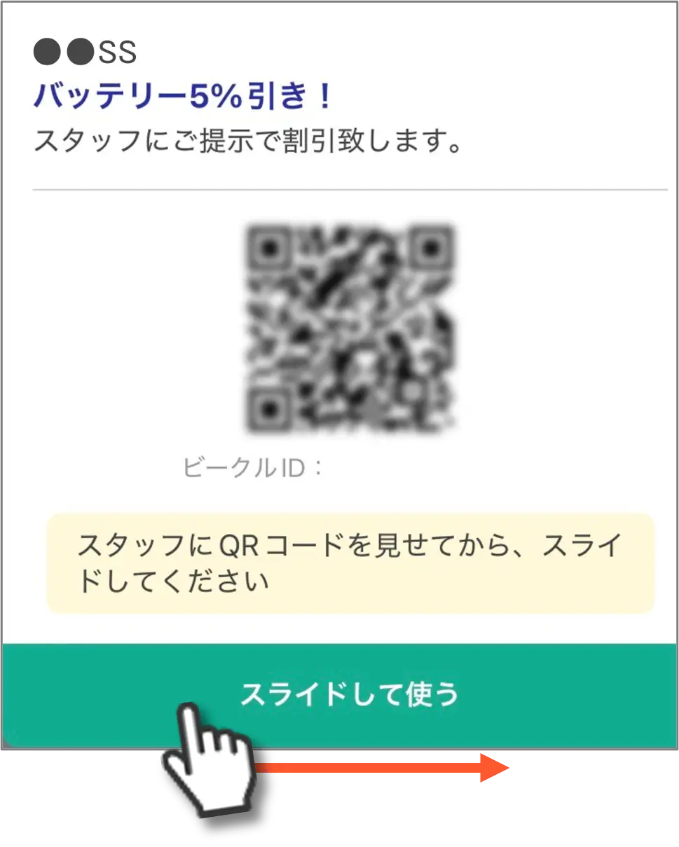3.QRをスタッフに提示し、「スライドして使う」をスライド