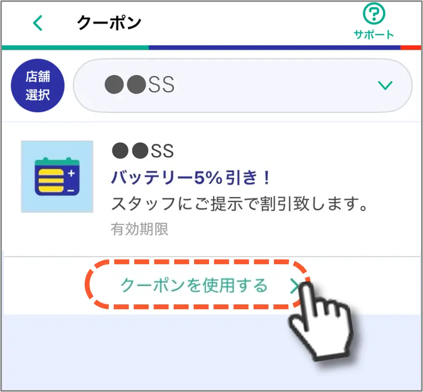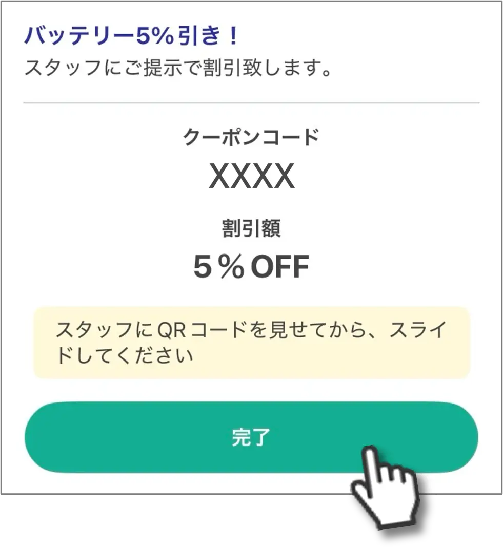 4.クーポンをご利用の際は、クーポンコードと値引額を店舗スタッフにご提示ください。