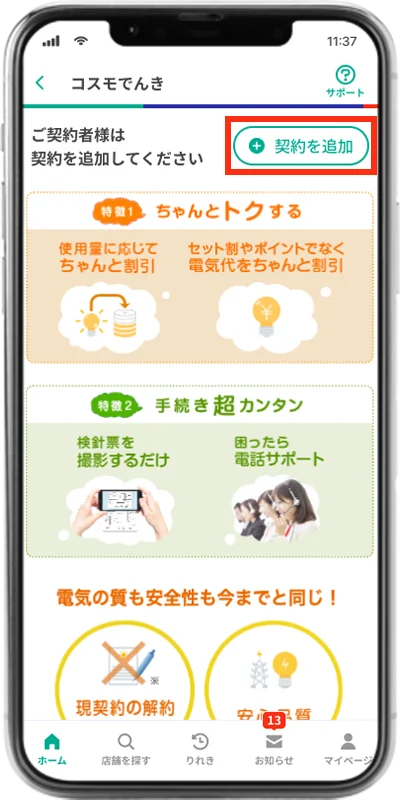 アプリから「コスモでんきお客さまページ」にログインできる!