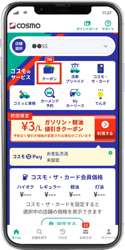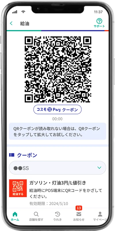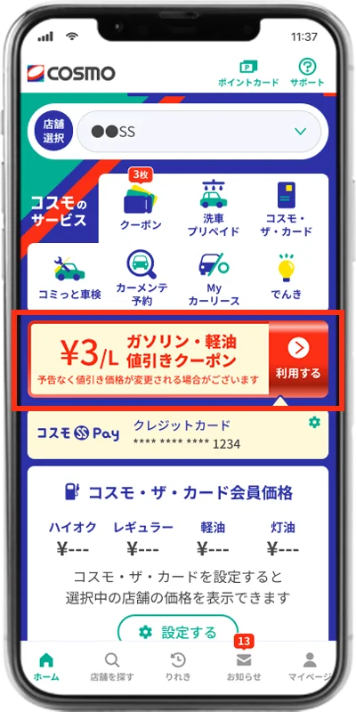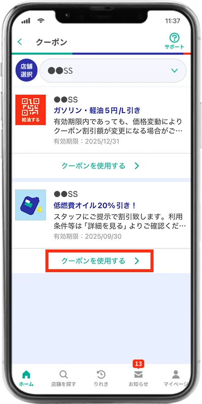 また、初回限定クーポンをご利用後も普段の給油がお得になる、お客様にぴったりなガソリン・軽油代値引きクーポンがアプリに届きます。